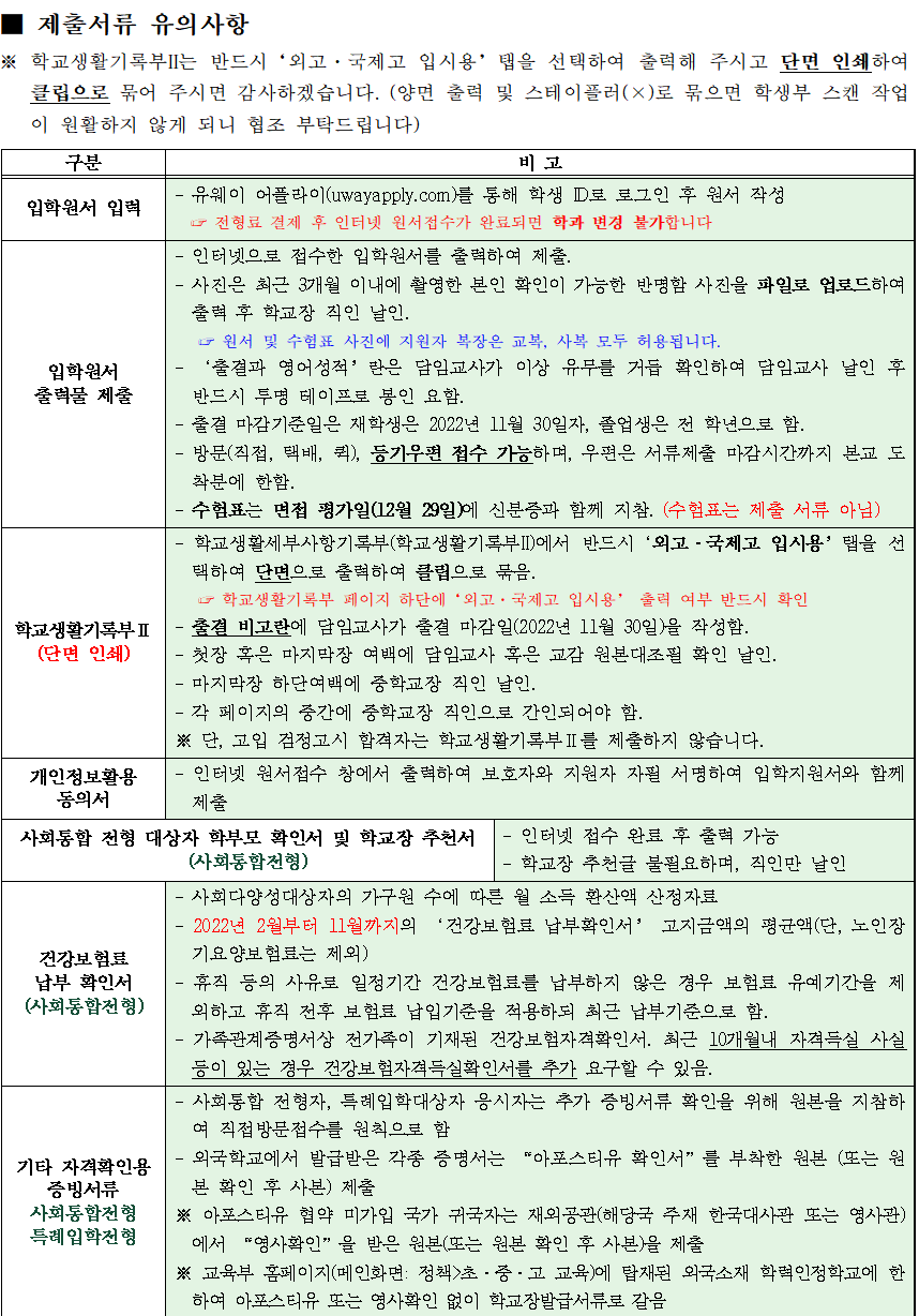2023Çг⵵ ½ÅÀÔÇÐÀüÇü Á¦Ãâ¼­·ù À¯ÀÇ»çÇ×