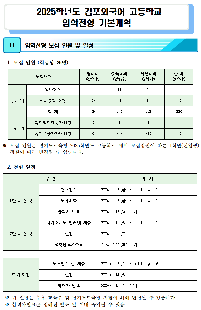 2025Çг⵵ ±èÆ÷¿Ü±¹¾î °íµîÇб³ ÀÔÇÐÀüÇü ±âº»°èȹ