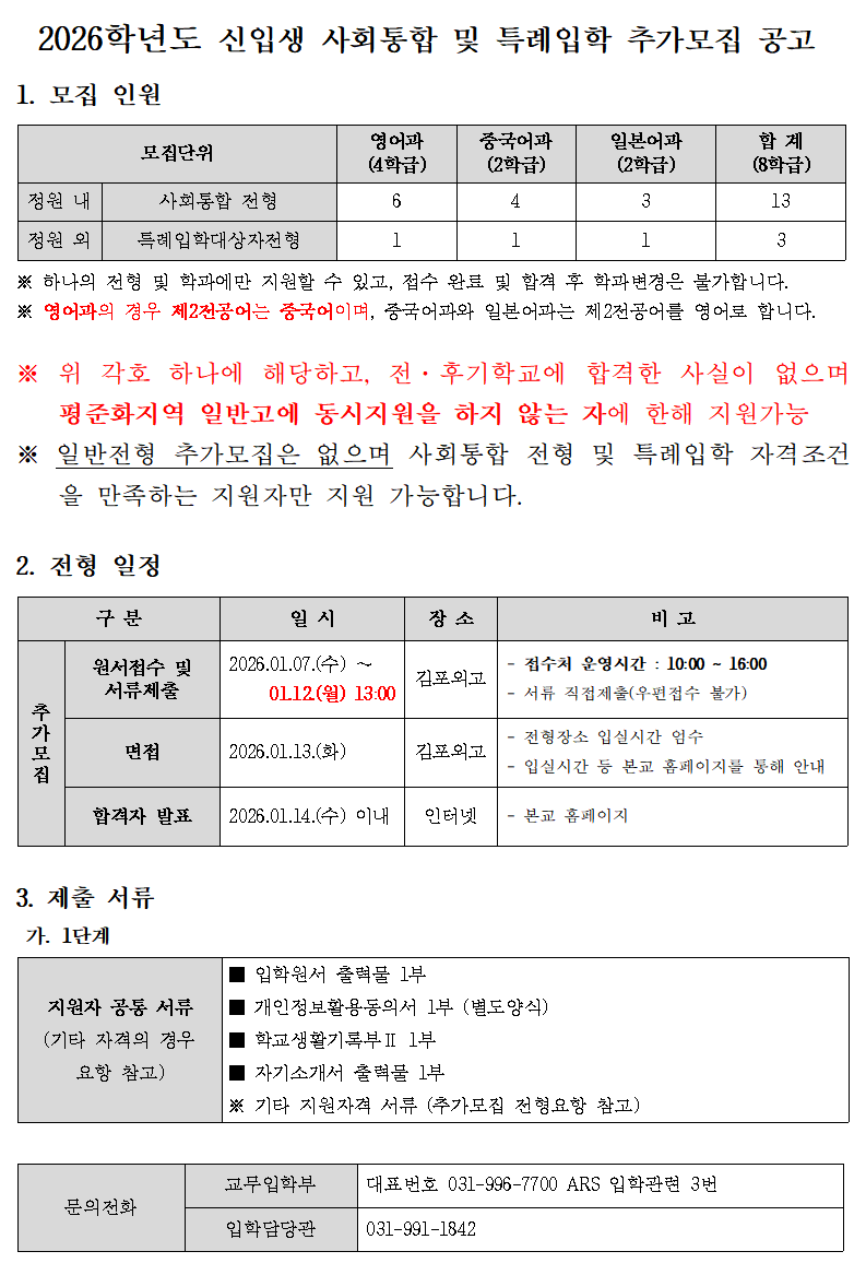 2026Çг⵵ ½ÅÀÔ»ý »çȸÅëÇÕ ¹× Ư·ÊÀÔÇÐ Ãß°¡¸ðÁý °ø°í