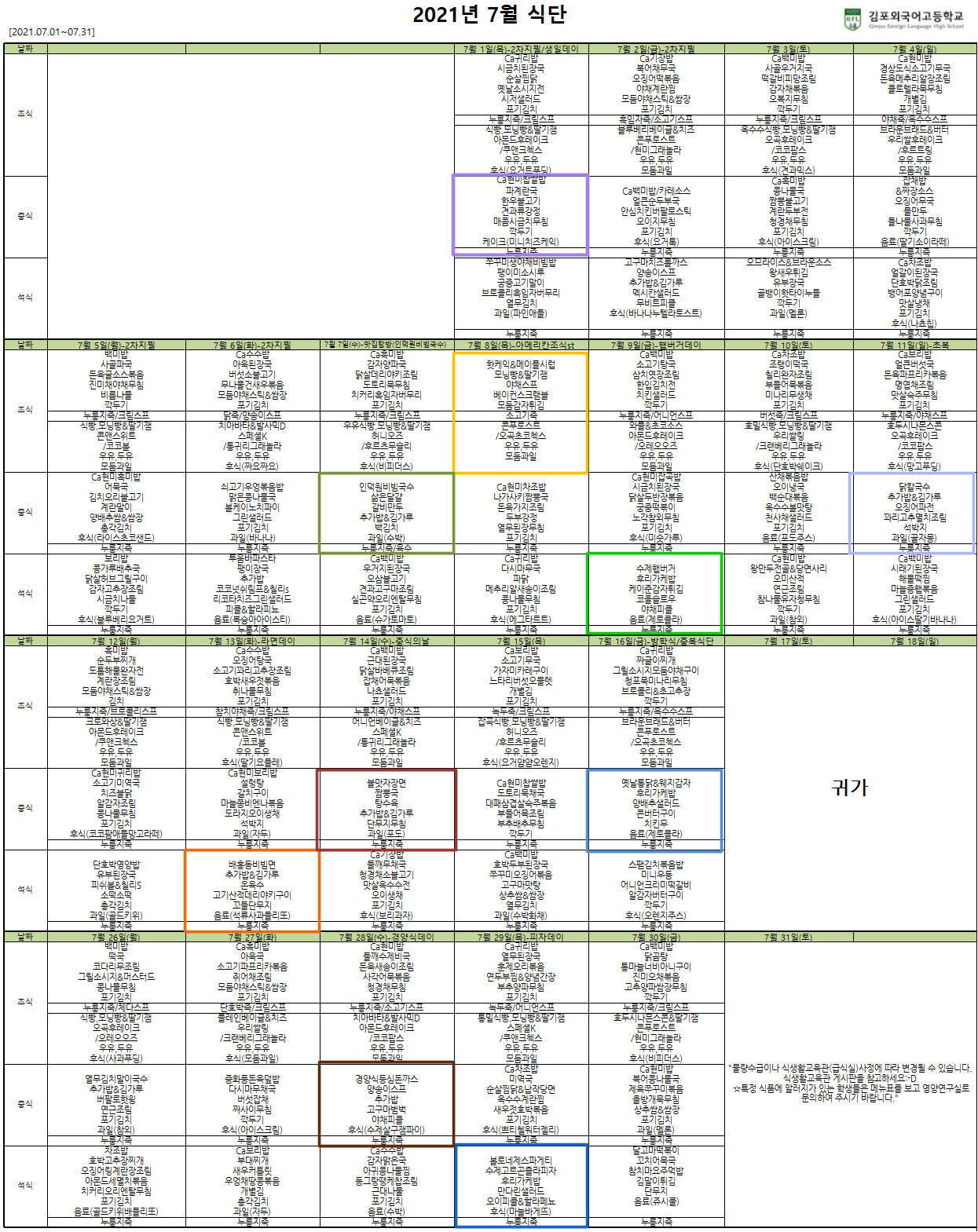 2021³â 7¿ù ½Ä´ÜÇ¥