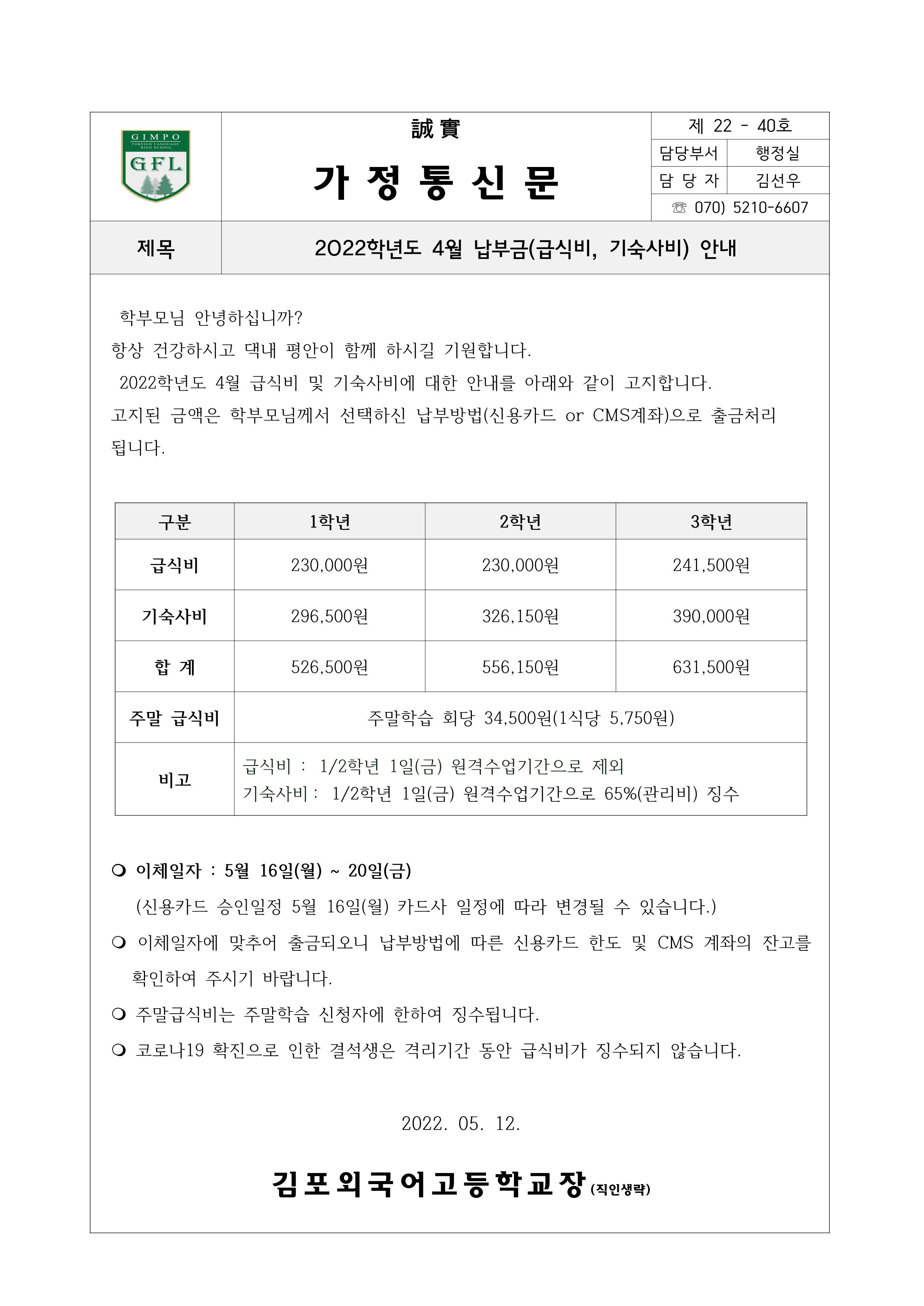 2022Çг⵵ 4¿ù ³³ºÎ±Ý ¾È³» (±Þ½Äºñ, ±â¼÷»çºñ)