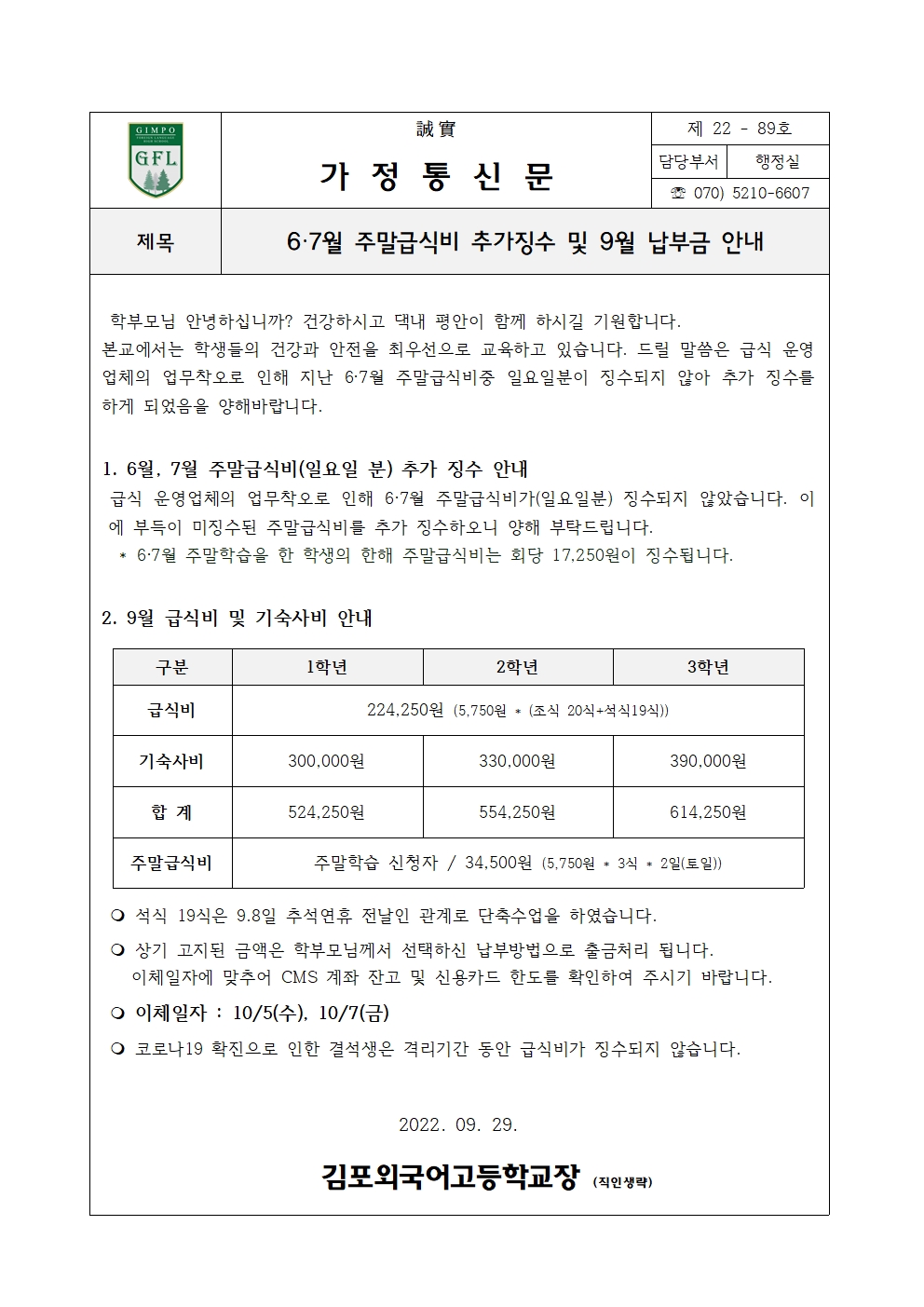 2022Çг⵵ 9¿ù ³³ºÎ±Ý ¹× 6¡¤7¿ù ÁÖ¸»±Þ½Äºñ Ãß°¡Â¡¼ö ¾È³»