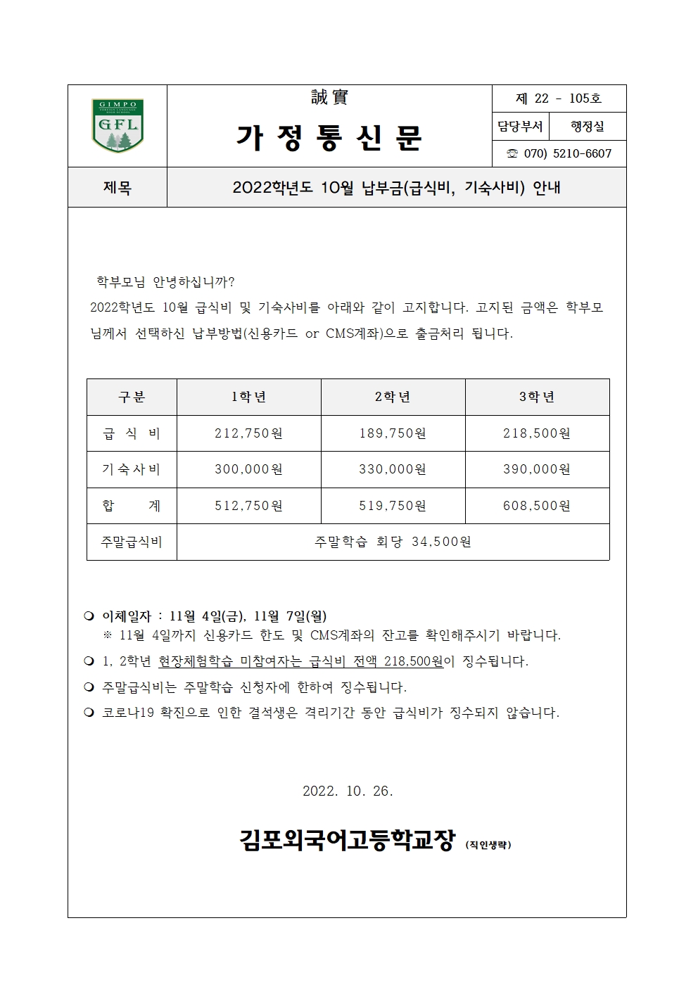 2022Çг⵵ 10¿ù ³³ºÎ±Ý ¾È³» (±Þ½Äºñ, ±â¼÷»çºñ)