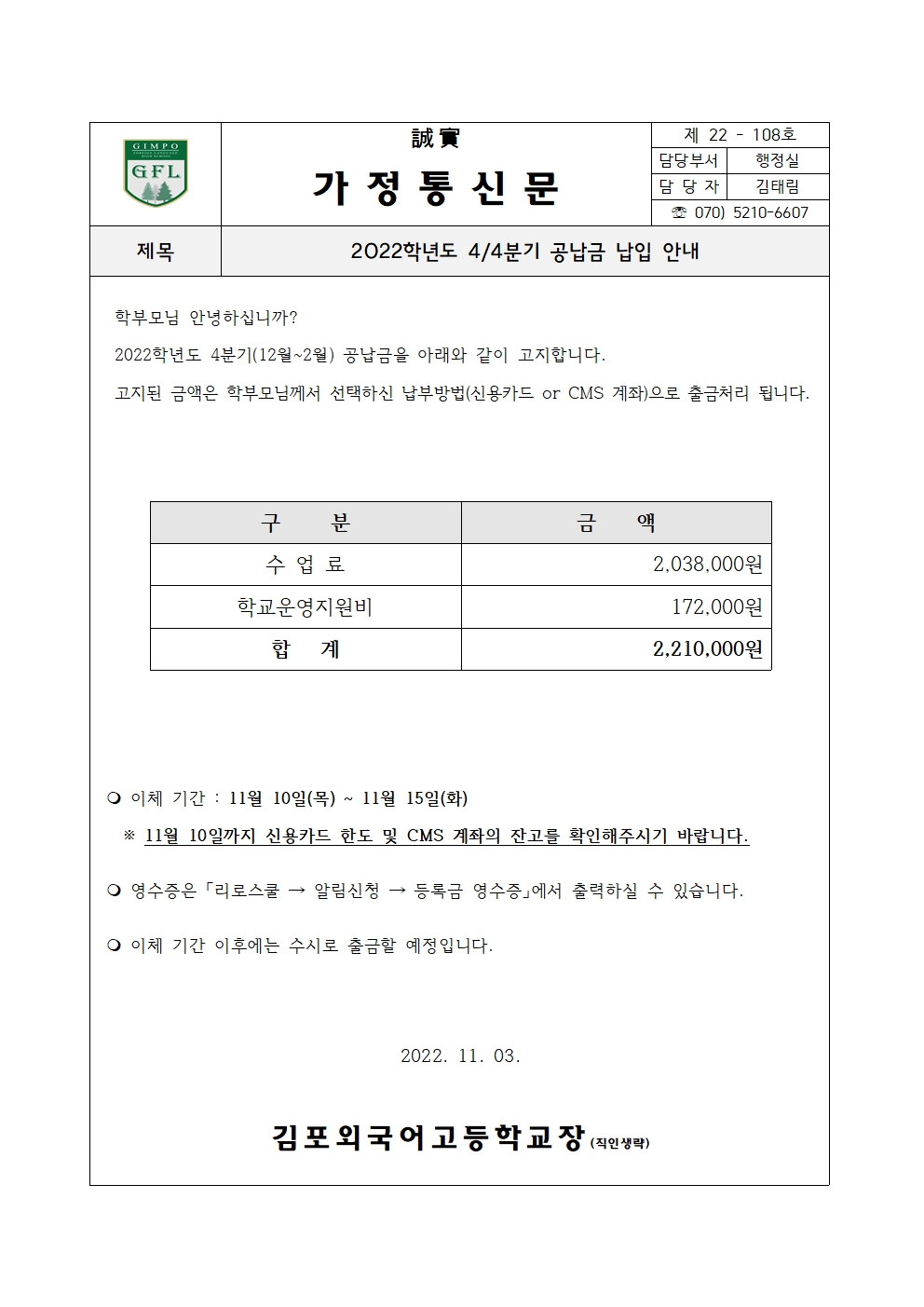 2022Çг⵵ 10¿ù ³³ºÎ±Ý ¾È³» (±Þ½Äºñ, ±â¼÷»çºñ)
