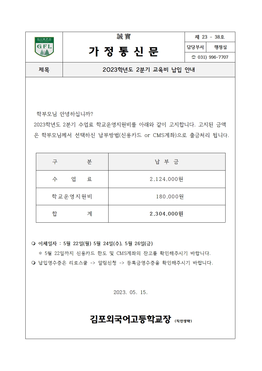 2023Çг⵵ 2ºÐ±â ±³À°ºñ ³³ÀÔ ¾È³»
