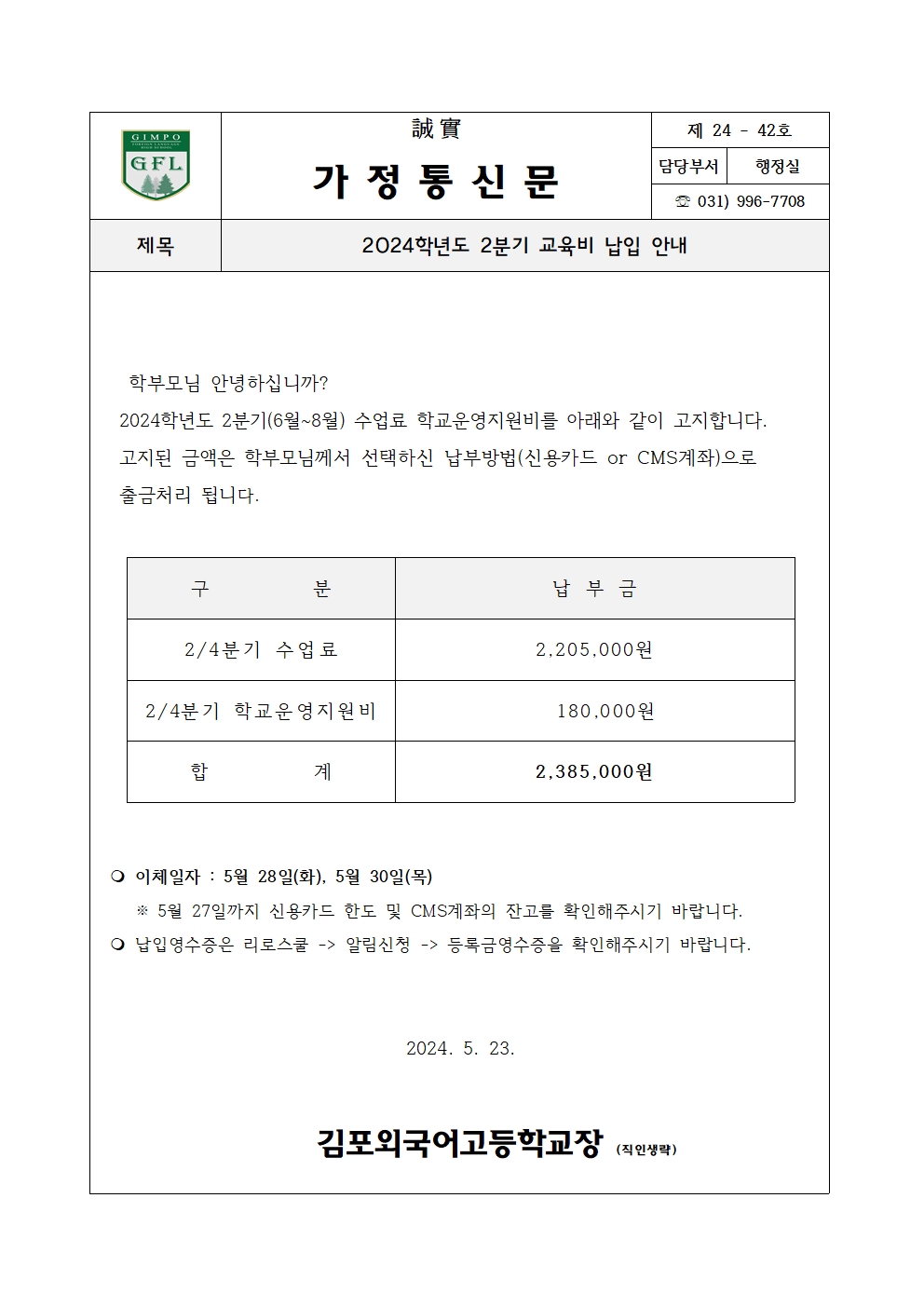 2024Çг⵵ 2ºÐ±â ±³À°ºñ ³³ºÎ±Ý ¾È³»